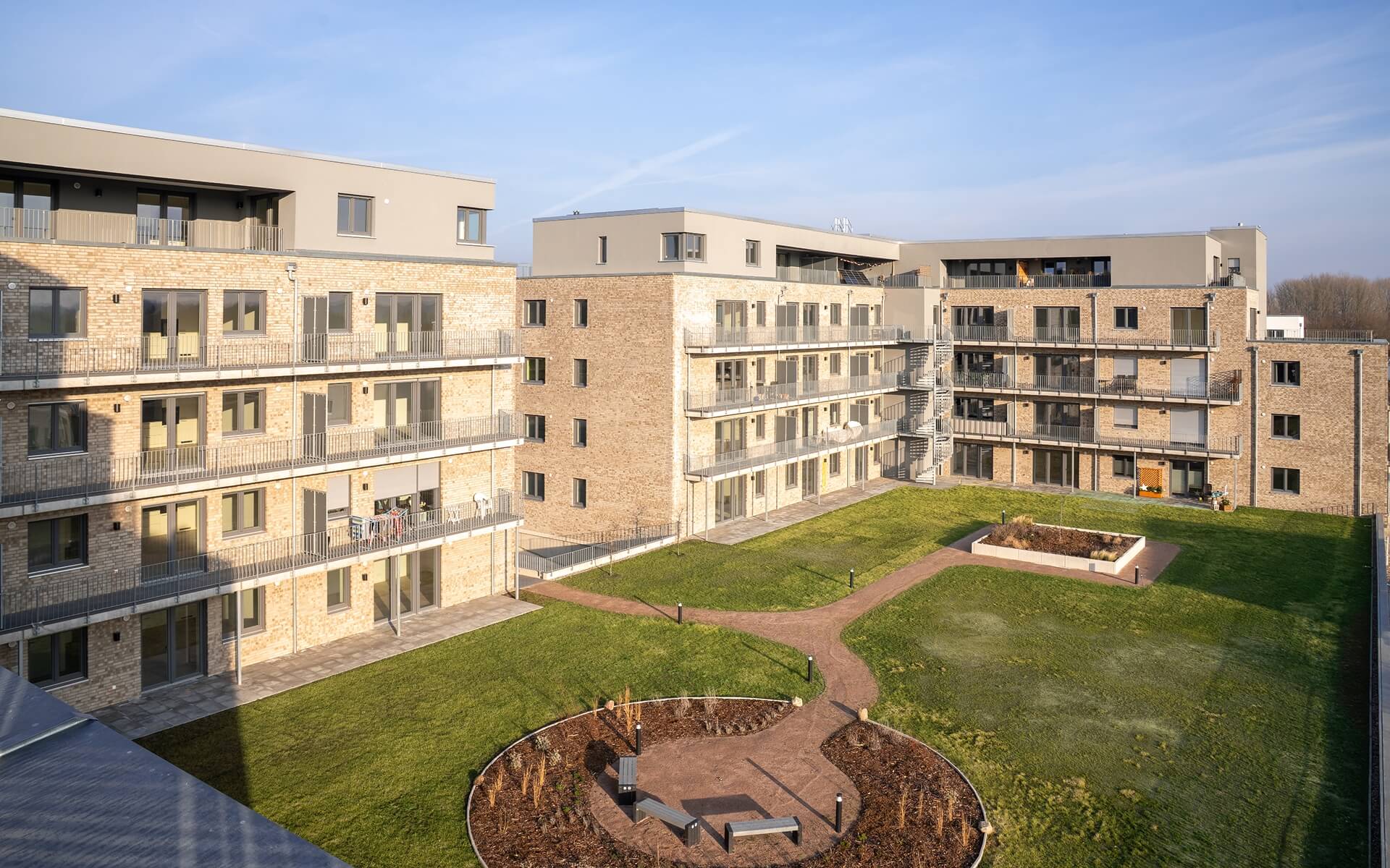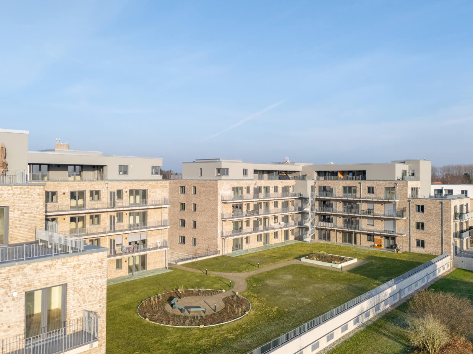 Im Mittelpunkt steht der geschützte Quartiersgarten, der die Häuser miteinander verbindet und Begegnungen ganz selbstverständlich entstehen lässt.