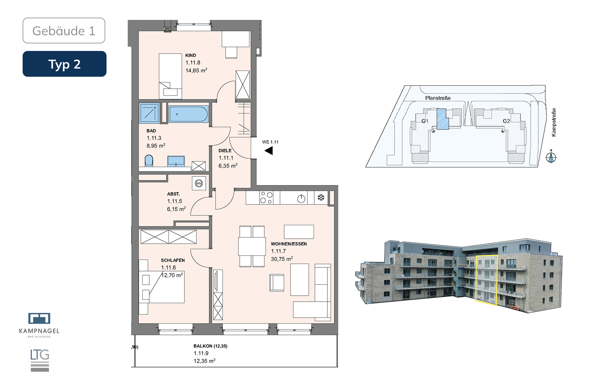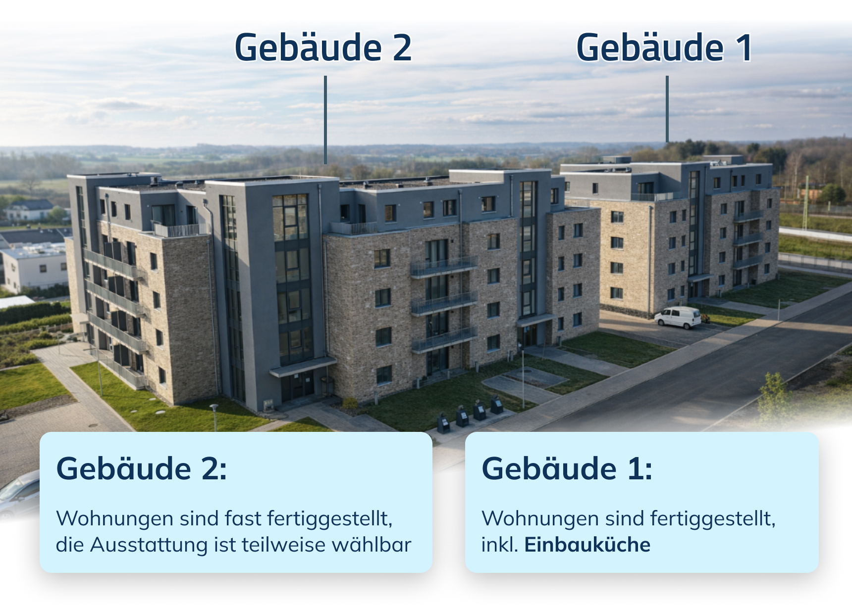 In Gebäude 1 sind die Wohnungen dieses Typs bereits bezugsfertig und mit einer hochwertigen Nolte-Einbauküche, Vinyl-Designboden und modernen Fliesen ausgestattet. In Gebäude 2 besteht – abhängig vom Baufortschritt – die Möglichkeit, einzelne Ausstattungsdetails noch mitzugestalten. Damit ist Wohnungstyp 2 eine attraktive Wahl für Eigennutzer und Kapitalanleger, die Wert auf Komfort, Flexibilität und eine gute Lage legen.